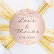 A rose gold background. Decorated with confetti. Personalize and add your first name. With the text: Love & Thanks. Perfect for party favors.