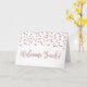 Welcome back card with gold and Rose confetti pattern. Perfect to welcome employees back to work.