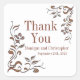 An elegant but simple floral wedding thank you sticker which includes the bride and groom's names and their wedding date.