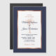 Invite your guests to help you celebrate your special day with this elegant magnetic invitation featuring modern script, rose gold copper and navy blue text including an artistic palm tree and metallic rose gold copper frame on the front. A navy blue background is on the front and back of the card. If you need help or a custom order, please contact me.
