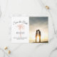 Ask your guests to save your wedding date with this simply elegant design featuring your photo, modern script, charcoal gray text and a rose gold copper artistic palm tree. A white and gray marble background is on the back of the card. Customize it with your photo, wedding date, names and location.