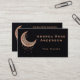 A gorgeous rose gold crescent moon design on a black background. This elegant all black business card would be perfect for a healing business such as yoga, massage or spiritual coach. Customize with your business information.