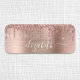 Elegant and girly name tag featuring rose gold faux glitter drips on a rose gold faux brushed metallic background. Monogram with your name in a stylish trendy white script with swashes.