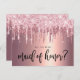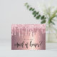 This modern invitation design features faux pink & copper rose gold dripping glitter metallic texture and elegant calligraphy font.