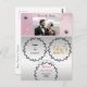 The embossed silver floral holds information you wish to convey at that time. A unique gold and glitter number and a row of wavy white pearls behind the custom photo add chic to the final design.