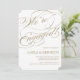 This invitation features faux rose gold glitter and says "We're Engaged.