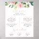 Compliment your classic wedding event with this rose gold fall flowers wedding bar menu. The design features pink, white watercolor flowers with green leaves.