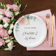 A chic white background. Decorated with a rose gold, blush pink floral, flower (rose)and green watercolored eucalyptus leaves, sprigs, greenery and a faux gold sprig. Personalize and add your names and the wedding date.