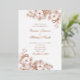 This luxurious wedding invitation features rose gold foil floral illustrations in both the upper and lower corners, framing your custom text with shimmering elegance. Paired with vintage-inspired script and serif fonts on a clean white background, this design is ideal for couples seeking a timeless and romantic wedding style. A perfect fit for garden, classic, or formal weddings in any season.