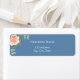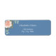 Dusty blue background. A rose gold and blush pink rose, floral and eucalyptus greenery and faux gold foliage. Personalize and add your name and address.
