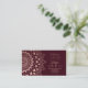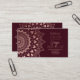 A modern yoga instructor business card, boho, hand painted rose gold floral mandala, the red burgundy background color is fully customizable