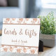 Customizable tabletop sign for wedding features handwriting style font on gray background with rose gold floral framed overlay and center white text box. "Cards & Gifts" text can be customized to fit any of your "day of" needs, including "welcome" " reception" "photo booth" "parking" "cocktails" etc.