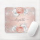 Rose gold floral silver glitter name mouse pad