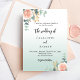 A chic white and green gradient background. Decorated with rose gold and blush pink florals, roses flowers and green watercolored eucalyptus leaves, sprigs, greenery and faux gold sprigs. Personalize and add your names and details.