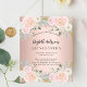 A modern, stylish and glamorous invitation for a Quinceañera, 15th birthday party. A rose gold background with blush pink flowers, roses. The name is written with a modern hand lettered style script. Personalize and add your party details.
