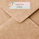 A rose gold and blush pink rose, floral and eucalyptus greenery and faux gold foliage. Personalize and add your name and address. Black letters.