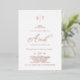 Perfect for a timeless celebration, this sophisticated wedding invitation features graceful swirls, delicate flourishes, and exquisite hand-lettered rose gold foil typography, beautifully accented with a personalized monogram for a touch of refined elegance.
