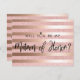 Simple elegant Matron of honor proposal postcard. Design featuring brush script '' Matron of honor'' on a rose gold glitter and foil stripes background. Add your message to the back of this postcard. To edit template click customize further.