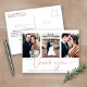 Rose Gold Handwritten Wedding Thank You Multiple Photo Card in a font that is elegant and evokes a romantic handwritten feel. Designed to use three of your favorite photos for added customization. Easily add your names and dates for a truly personalized design.