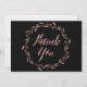 Wedding Thank you invitations cards with rose gold foil effect floral wreath and custom text - you can change text, printed on black background