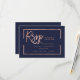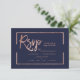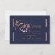 Rose gold frame script navy blue rsvp wedding card