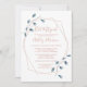 Rose gold geometric frame typography Bat Mitzvah with hand painted blue leaf branches on customizable white background.