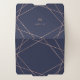 This contemporary design features a rich, navy blue background and faux rose gold geometric lines for an edgy, modern look.