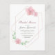 A delicate rose gold geometric frame is decorated with simple pink blooms and blue green foliage on this pretty floral bridal shower invitation. The text is set in deep pink and coordinating blue green script font. Add your details on the product page.