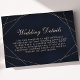 Enhance your wedding stationery with this elegant details card, featuring a sophisticated midnight blue background accented with modern rose gold geometric lines. Perfect for providing your guests with essential information such as directions, accommodations, and RSVP details, this card adds a touch of luxury and style to your wedding suite. Customize with your specific details to ensure your guests are well-informed and impressed by your attention to detail.
