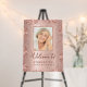Elegant Modern Sparkle rose gold glitter metallic and Personalized Photo 100th Birthday Welcome Foam Board. This Girly Adult feminine one-hundred or any age Birhday party sign featuring a stylish handwritten calligraphy script, blush pink or rose gold faux brushed metallic foil background with loose glam glitter frame around. Ideal for a feminine adult or girly milestone birthday celebration, this perfectly captures the essence of a modern rose gold or blush pink glitter sparkle girly birthday party.