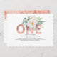 Rose Gold Glitter and White Flowers 1st Birthday Invitation