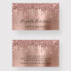 Make a good impression with this chic business card with rose gold faux glitter drips and your name in a trendy script against a rose gold faux foil background. Perfect for beauty salons, makeup artists, hair stylists and estheticians.