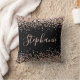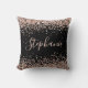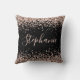 Rose Gold Glitter Black Personalized Name Throw Pillow