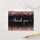 Rose Gold Glitter Black Sweet 16 Hearts Thank You Postcard