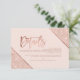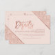 Rose Gold typography on customizable blush pink rose gold glitter color block and faux rose gold geometric stripes chic wedding directions and details , perfect for elegant, beach wedding, add your accommodation at the back