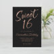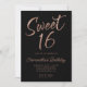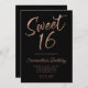Rose Gold Glitter Brush Script Sweet 16 Black Invitation