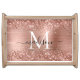 Rose Gold Glitter Brushed Metal Monogram Script Serving Tray