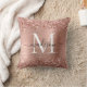 Rose Gold Glitter Brushed Metal Monogram Script Throw Pillow