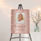Elegant Modern Sparkle rose gold glitter metallic and Personalized Photo 50th Birthday Welcome Foam Board. This Girly Adult feminine FIFTY (FIFTIETH) OR ANY AGE Birhday party sign featuring a stylish handwritten calligraphy script, blush pink or rose gold faux brushed metallic foil background with loose glam glitter frame around. Ideal for a feminine adult or girly milestone birthday celebration, this perfectly captures the essence of a modern rose gold or blush pink glitter sparkle girly birthday party.