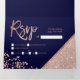 Rose gold glitter confetti navy blue wedding Tri-Fold invitation
