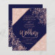 Rose Gold glitter confetti typography on customizable navy blue and faux rose gold geometric stripes chic wedding , perfect for elegant, luxurious wedding, affordable budget wedding .