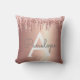 Rose Gold Glitter Dripping Monogram Throw Pillow
