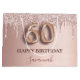 Elegant, classic, glamorous and girly for a 60th birthday party. Rose gold and blush pink, gradient background. Decorated with rose gold, pink faux glitter drips, paint dripping look. Personalize and add a name. With the text: Happy Birthday. The name is written with a modern dark rose colored hand lettered style script. Number 60 is written with a balloon style font.
