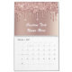 Rose Gold Glitter Drips Calendar Custom Text Name