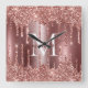 Rose Gold Glitter Drips Monogram Personalized Square Wall Clock