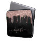 Rose Gold Glitter Drips Personalized Black Laptop Sleeve