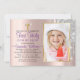 Rose Gold Glitter Drips Photo First Communion Invitation