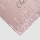 A rose gold, faux metallic looking background with faux glitter drips, paint dripping look. Personalize and add a name. The name is written with a modern hand lettered style script. For birthday gifts, bridal showers and baby showers.