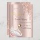 Rose Gold Glitter Drips Swan Crown Flowers Invitation