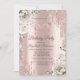 Rose Gold,Glitter Drips,White Flowers 90th Invitation